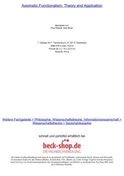 Axiomatic Functionalism: Theory and Application Bearbeitet von Paul Rastall, Ales Bican 1. Auflage 2011. Taschenbuch. IX, 321 S. Paperback ISBN 978 3 0343 1033 8