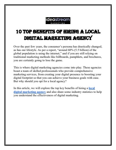 10 Top Benefits of Hiring a Local Digital Marketing Agency
