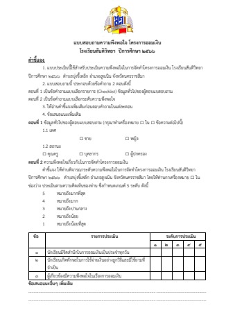 แบบสอบถามความพึงพอใจ โครงการออมเงินสันติ