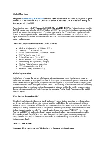 Cannabidiol (CBD) Market Size, Share, Growth, and Key Trends, 2032