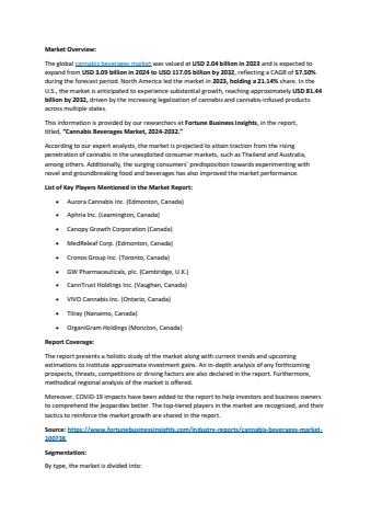 Cannabis Beverages Market Trends, Size, and Forecast Analysis, 2032