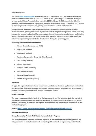 Whey Protein Market Trends, Size, and Forecast Analysis, 2032