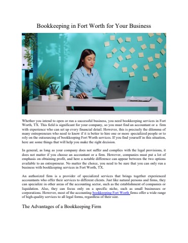 Whether you intend to open or run a successful business, you need bookkeeping services in Fort Worth, TX. This field is significant for your company, so you must find an accountant or a firm with experience who can set up every financial detail. However, this is precisely the dilemma of many entrepreneurs who need to know if it is better to hire one or more specialized people or to rely on the outsourcing of bookkeeping Fort Worth services. If you find yourself in this situation, here are some things that will help you make the right decision.<br>https://www.proledge.com