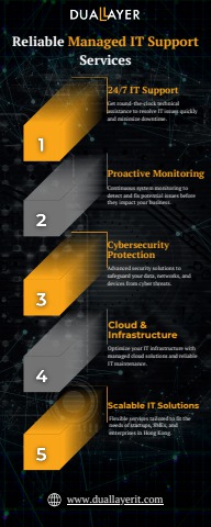 Dual Layer IT Solutions provides Managed IT Support Services in Hong Kong, offering 24/7 assistance, proactive monitoring, cybersecurity protection, and cloud management. Our scalable IT solutions ensure businesses stay secure, efficient, and technologically advanced. Get expert support to minimize downtime and optimize IT performance for seamless business operations. Take a look at this graphical representation for more information.