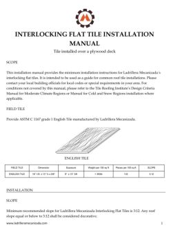 www.ladrilleramecanizada.com 1 INTERLOCKING FLAT TILE INSTALLATION MANUAL Tile installed over a plywood deck SCOPE This installation manual provides the minimum ...