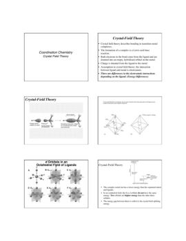 Coordination Chemistry Crystal Field Theory • Crystal field theory describes bonding in transition metal complexes. • The formation of a complex is a Lewis acid ...