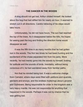 ©Dennis Strain 8/19/2013 1 THE DANCER IN THE WOODS A king should not get lost, Arthur chided himself. He looked about the bog that had stifled him for nearly an hour.