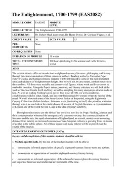 The Enlightenment, 1700 -1799 (EAS2082) MODULE CODE EAS2082 MODULE LEVEL 2 MODULE TITLE The Enlightenment, 1700-1799 LECTURER(S) Dr. Robert Mack (convenor ...