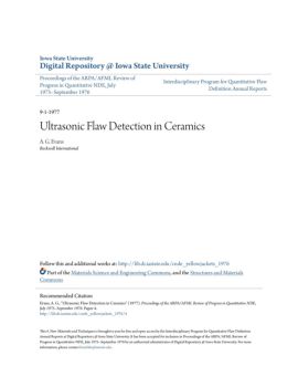 ULTRASONIC FLAW DETECTION IN CERAMICS A. G. Evans Science Center, Rockwell International Thousand Oaks, California 91360 The work I shall be describing ...