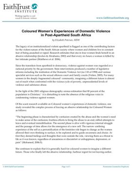 www.faithtrustinstitute.org Coloured Women’s Experiences of Domestic Violence . in Post-Apartheid South Africa . by Elizabeth Petersen, MSW