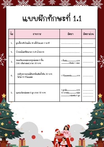 อัตราส่วน สัดส่วน และร้อยละ(แบบฝึกทักษะ)