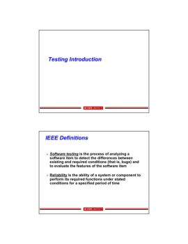 Testing Introduction IEEE Definitions ¾Software testing is the process of analyzing a software item to detect the differences between existing and required ...