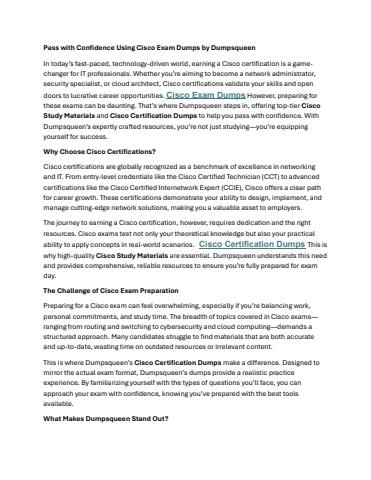 Pass with Confidence Using Cisco Exam Dumps by Dumpsqueen