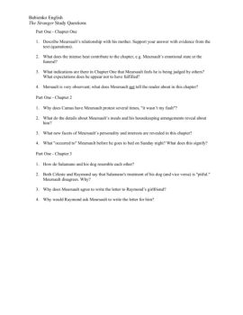 Babienko English The Stranger Study Questions Part Two - Chapter Five 1. Up until he meets with the chaplain, Meursault struggles with thoughts of death and