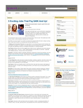 HOME CAREERS SCHOOLS ARTICLES REFERENCE Brought to you by Yahoo! Hotjobs Yahoo! Mail Search Web Search Articles 5 Exciting Jobs That Pay $40K And Up!