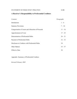 S14B A Receiver’s Responsibility to Preferential Creditors INTRODUCTION 1. This Statement of Insolvency Practice is one of a series issued by the Association