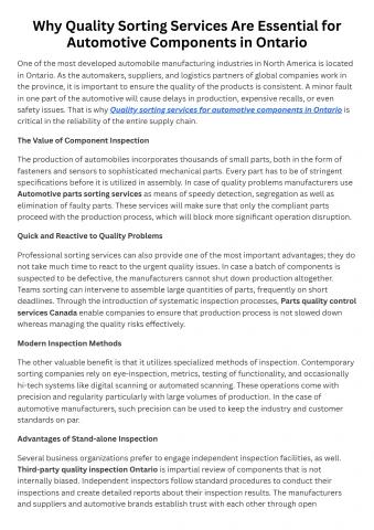 Why Quality Sorting Services Are Essential for Automotive Components in Ontario