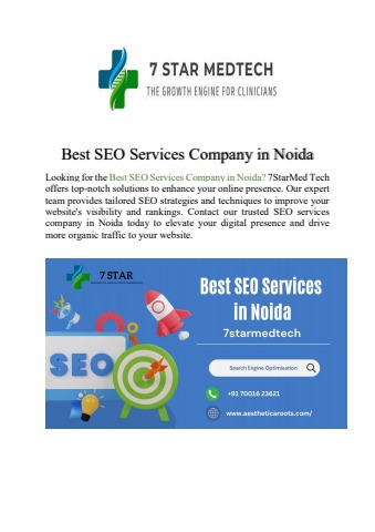 Looking for the best SEO services company in Noida? 7StarMed Tech offers top-notch SEO solutions to boost your online presence. Contact us for expert consultation and elevate your business with our exceptional SEO services.