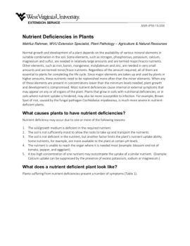 ANR-IPM-15-006 Nutrient Deficiencies in Plants . Mahfuz Rahman, WVU Extension Specialist, Plant Pathology – Agriculture & Natural Resources . Normal growth and ...