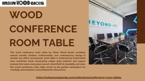 The wood conference room table collection from Urban Wood Goods reflects sustainability, craftsmanship, and sophistication. Each piece is handcrafted from reclaimed wood, giving every table a unique texture and story. A wood conference room table by Urban Wood Goods not only offers durability but also promotes eco-friendly office furniture choices. Perfect for modern offices and creative studios, these tables combine rustic charm with contemporary appeal. Enhance your meeting area with a wood conference room table that embodies quality, beauty, and environmental consciousness all designed by Urban Wood Goods to last for generations.
