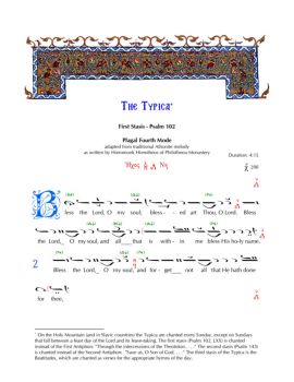 The Typica* First Stasis - Psalm 102 Plagal Fourth Mode adapted from traditional Athonite melody as written by Hieromonk Hierotheos of Philotheou Monastery