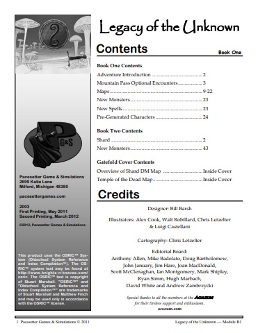 B1 Legacy of the Unknown, Book One (1e)