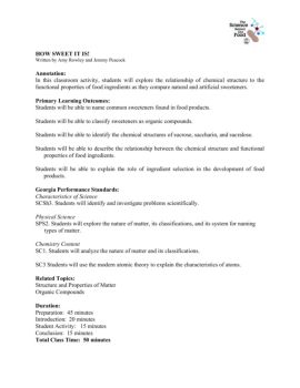 HOW SWEET IT IS! Written by Amy Rowley and Jeremy Peacock ... Saccharin (Figure 3), the world’s oldest low-calorie sweetener, was discovered accidentally in