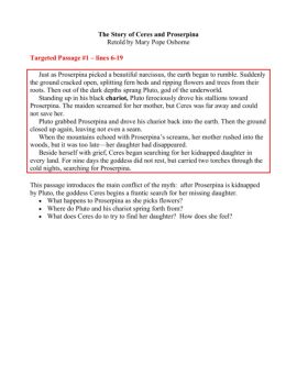 The Story of Ceres and Proserpina Retold by Mary Pope Osborne Targeted Passage #1 – lines 6-19 Just as Proserpina picked a beautiful narcissus, the earth began to ...