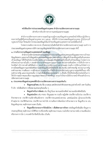 หนังสือแจ้งการประมวลผลข้อมูลส่วนบุคคล รพ.เดิมบางนางบวช