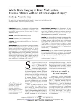 PAPER Whole Body Imaging in Blunt Multisystem Trauma Patients Without Obvious Signs of Injury Results of a Prospective Study Ali Salim, MD; Burapat Sangthong, MD ...
