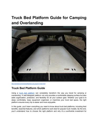 BamBeds specializes in rapidly removable, modular sleep and storage platforms designed for truck beds and SUVs. Their systems are a tailored fit for specific vehicle makes and models, enabling users to convert their vehicle bed into a sleeping platform with under-bed storage while preserving full use of the bed when needed.