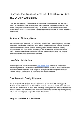 This platform is a treasure trove for anyone passionate about Urdu novels, offering a wide array of books that cater to diverse tastes and preferences.