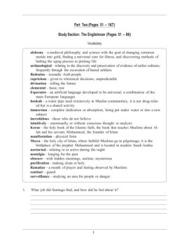 1!!!!! Part Two (Pages 51 – 167)!!! Study Section: The Englishman (Pages 51 – 86)!! Vocabulary!!! alchemy – a medieval philosophy and science with the goal of ...