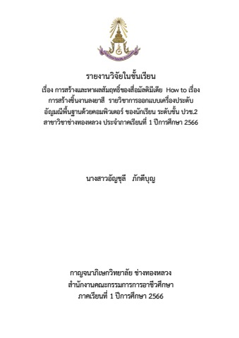 เรื่อง การสร้างและหาผลสัมฤทธิ์ของสื่อมัลติมีเดีย How to เรื่องการสร้างชิ้นงานลงยาสี รายวิชาการออกแบบเครื่องประดับ