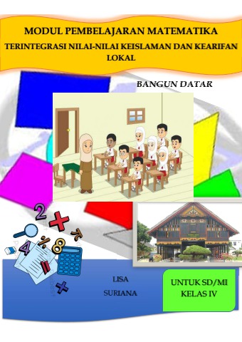 Dalam proses pembelajaran matematika, pemahaman tentang konsepnya akan mudah tercapai apabila contoh yang ditampilkan adalah benda yang terdekat dengan lingkungan tempat siswa berada. Berbicara pendidikan di Aceh, maka tentu akan sangat kental dengan nilai-nilai keislaman dengan notabene masyarakatnya yang menganut agama Islam. Dalam perjalanan sejarah Aceh, terlihat bahwa nilai-nilai keislaman ini melekat erat di dalam adat istiadat Aceh yang tercermin dari berbagai kearifan lokal Aceh, seperti rumah adat Aceh, pinto Aceh, tarian Aceh, Mesjid di Aceh, bahkan sampai kepada kuliner Aceh serta motif pakaian Aceh yang tidak lepas dari nilai-nilai Islam. Berangkat dari keadaan ini, maka kami berinisiatif untuk membidani lahirnya sebuah Modul Pembelajaran Matematika Terintegrasi Nilai-nilai Keislaman dan Kearifan Lokal, untuk memadupadankan secara apik antara konsep matematis dengan nilai keislaman yang merupakan sumber asalnya, serta berbagai bentuk kearifan lokal Aceh yang memiliki bentuk persegi, persegi panjang, dan segitiga, untuk memudahkan siswa untuk memahami konsep ini. Untuk itu modul ini amat tepat digunakan untuk siswa kelas IV Pendidikan Dasar Islam, di samping modul ini juga memiliki design yang menarik, kongkret, Islami, dan familiar dengan lingkungan siswa.