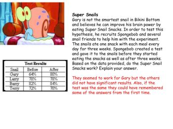 Super Snails Gary is not the smartest snail in Bikini Bottom and believes he can improve his brain power by eating Super Snail Snacks. In order to test this