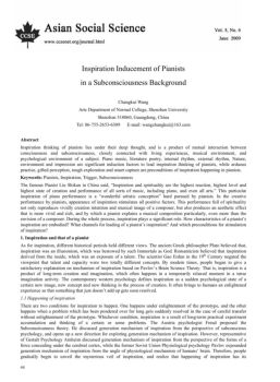 Vol. 5, No. 6 Asian Social Science 44 Inspiration Inducement of Pianists in a Subconsciousness Background