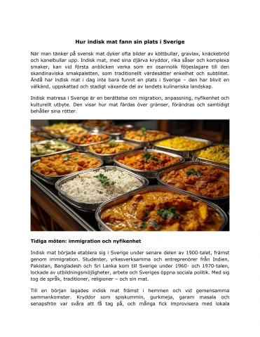 Från något exotiskt till en vardagsfavorit – utforska hur indisk mat blev en naturlig del av Sveriges matkultur. Upptäck migrationens roll, lokal anpassning och förändrade smakpreferenser som formade dess bestående popularitet.