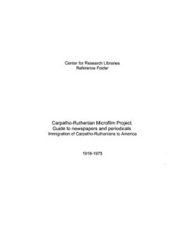 the carpatho-ruthenian microfilm project a guide to newspapers and periodicals compiled by frank renkiewicz immigration history research center university of minnesota