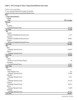 Table 6 - NFS Acreage by State, Congressional District and ...
