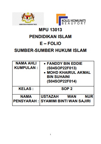 Sumber-sumber hukum islam. MPU 13013 PAI Fanddy & Khairul