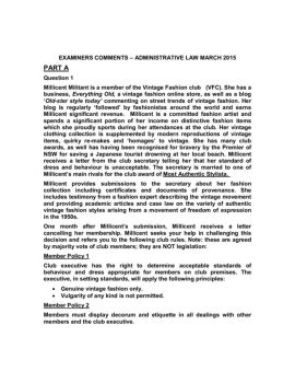 EXAMINERS COMMENTS – ADMINISTRATIVE LAW MARCH 2015 . PART A Question 1 . Millicent Militant is a member of the Vintage Fashion club (VFC). She has a