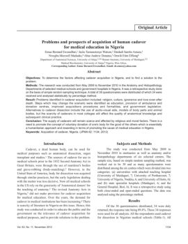 cadavers were procured through government hospitals, with the police department not contributing to the process. Besides, cadavers were mostly acquired whenever they