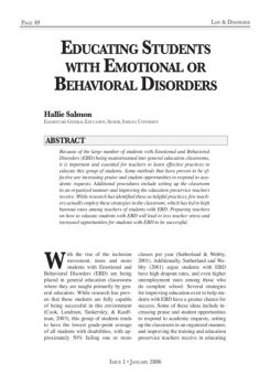 page 49 Law & DisorDer issUe 1 • JanUary 2006 saLmon page 50 issUe 1 • JanUary 2006 eDUcating stUDents with emotionaL or BehavioraL DisorDers ith the rise of the ...