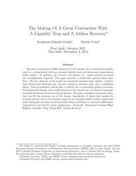 The Making Of A Great Contraction With A Liquidity Trap and A Jobless Recovery∗ Stephanie Schmitt-Groh´e† Mart´ın Uribe‡ First draft: October 2012