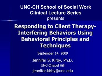 Responding to Client Therapy-Interfering Behaviors Using Behavioral Principles and Techniques September 14, 2009 Jennifer S. Kirby, Ph.D. UNC-Chapel Hill