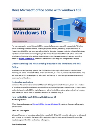 For many computer users, Microsoft Office is practically synonymous with productivity. Whether you're crunching numbers in Excel, crafting proposals in Word, or setting up presentations in PowerPoint, MS Office has been a staple on PCs for decades. However, with the rollout of Windows 10, there's a common question lingering in the minds of users: Does Microsoft Office come with Windows 10? In this article, we'll explore the relationship between MS Windows and MS Office, where to buy MS Windows 10, and how SoftwareDeals can help you navigate these waters.