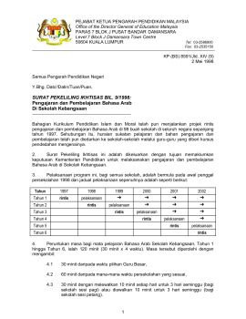 Surat Pekeliling Ikhtisas Bilangan 9 Tahun 1998 - Pengajaran dan Pembelajaran Bahasa Arab Di Sekolah Kebangsaan