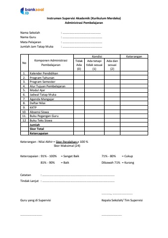 INSTRUMEN SUPERVISI ADMINISTRASI PEMBELAJARAN