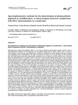 HPLC vs. spectrophotometric pigment determinations 141 Conventionally, limnologicalstudiesusechlo-rophyll-a concentration, the analysis of which